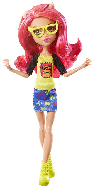 Гулія Йелпс в нарочито великі окуляри в чорній оправі виглядає справжньою відмінницею. Яскравим акцентом образу служать туфельки, бантик на вирізі сукні і помада. Купити ляльки монстер хай в Україні.