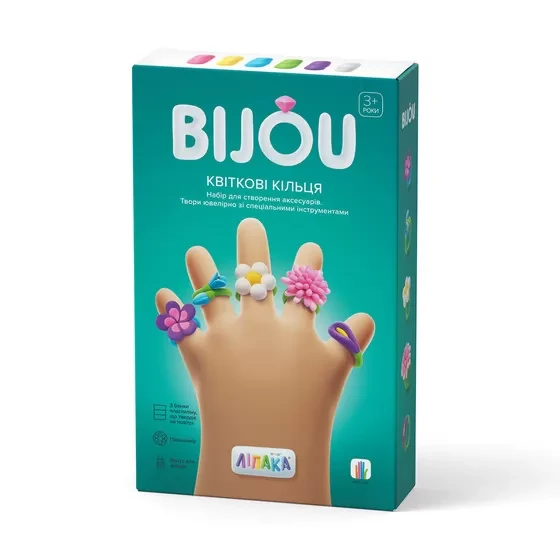 - З пластиліну, що входить до набору, можна створити 5 квіткових кілець, зображених на упаковці та описаних в інструкції (додатку).